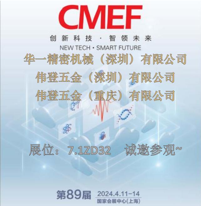 華一精密機(jī)械(深圳)有限公司/偉登五金(深圳)有限公司將參加第89屆中國(guó)國(guó)際醫(yī)療器械CMEF(春季)博覽會(huì)